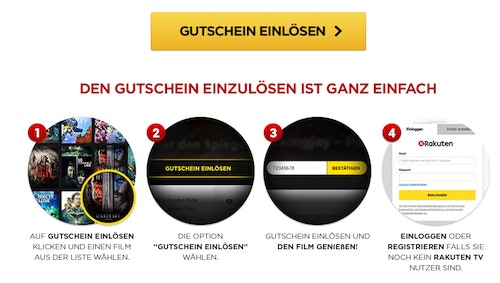 Nach dem Klick werdet ihr auf eine Seite weitergeleitet, auf der ihr den Gutschein einlösen könnt. Dort wird euch auch genau erklärt, was ihr machen müsst. Der ausgewählte Film steht anschließend in eurem Nutzerkonto bereit. Ihr könnt diesen dann innerhalb von 48 Stunden so oft anschauen, wie ihr möchtet.