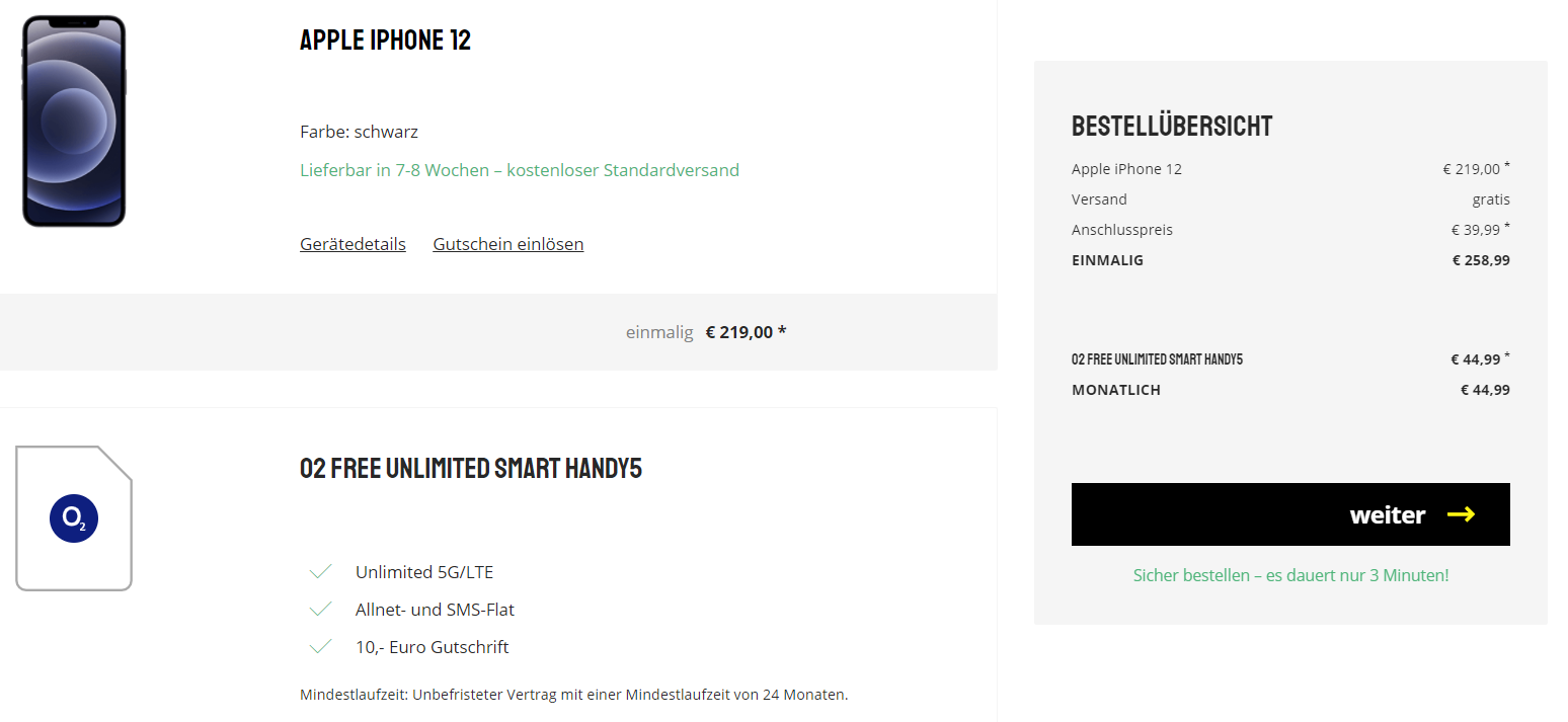 - Laufzeit: Verträge haben meist eine Laufzeit von 24 Monaten, es geht aber auch kürzer