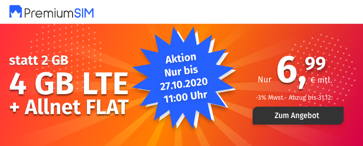 | Nur für kurze Zeit! Günstige Tarife ohne Bereitstellungspreis - 3GB, 6GB oder 10GB ab 4€ mtl. |