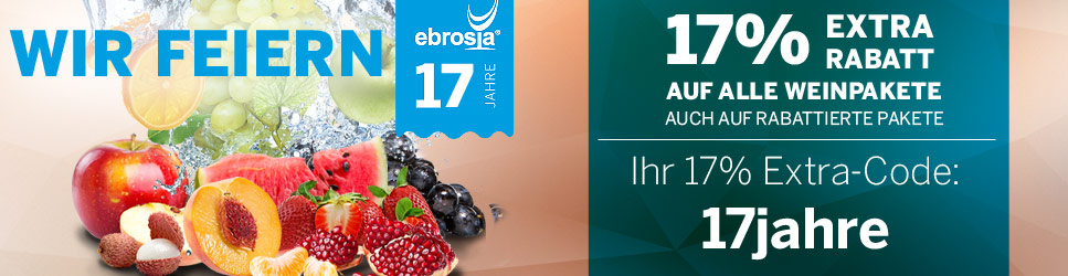 Ebrosia ist einer der Pioniere im deutschen Online Weinhandel. Knapp 20 Jahre Erfahrung, Tradition und Know-How besitzt das Unternehmen auf diesem Gebiet. Mehr als 120.000 Kunden haben bereits auf ebrosia.de bestellt. Weitere Gründe zum Bestellen findest du hier:
