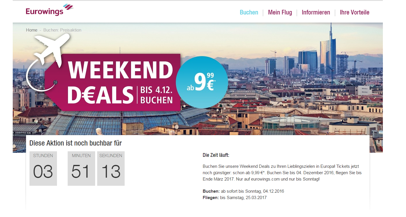 | Aktion | Flüge schon ab 29,99€ sichern | Bis auf Widerruf |