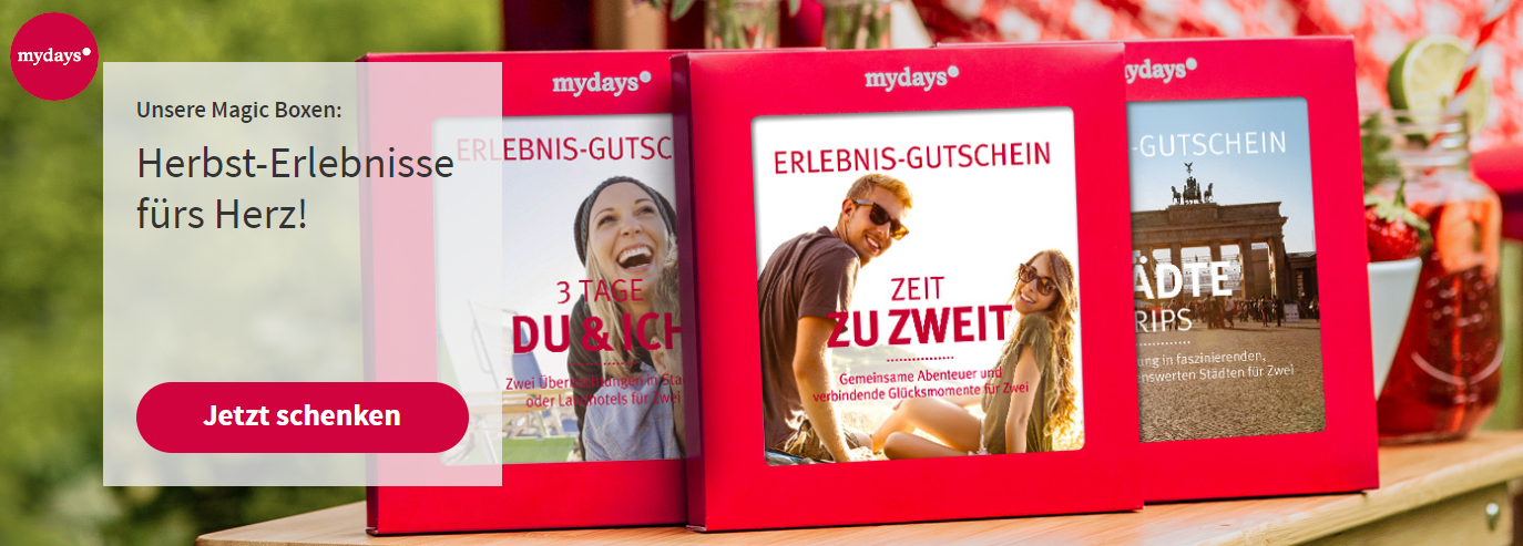 | Geschenkgutschein | Sichert euch mydays Geschenkgutscheine ab einem Wert von 50€ | Bis auf Widerruf |