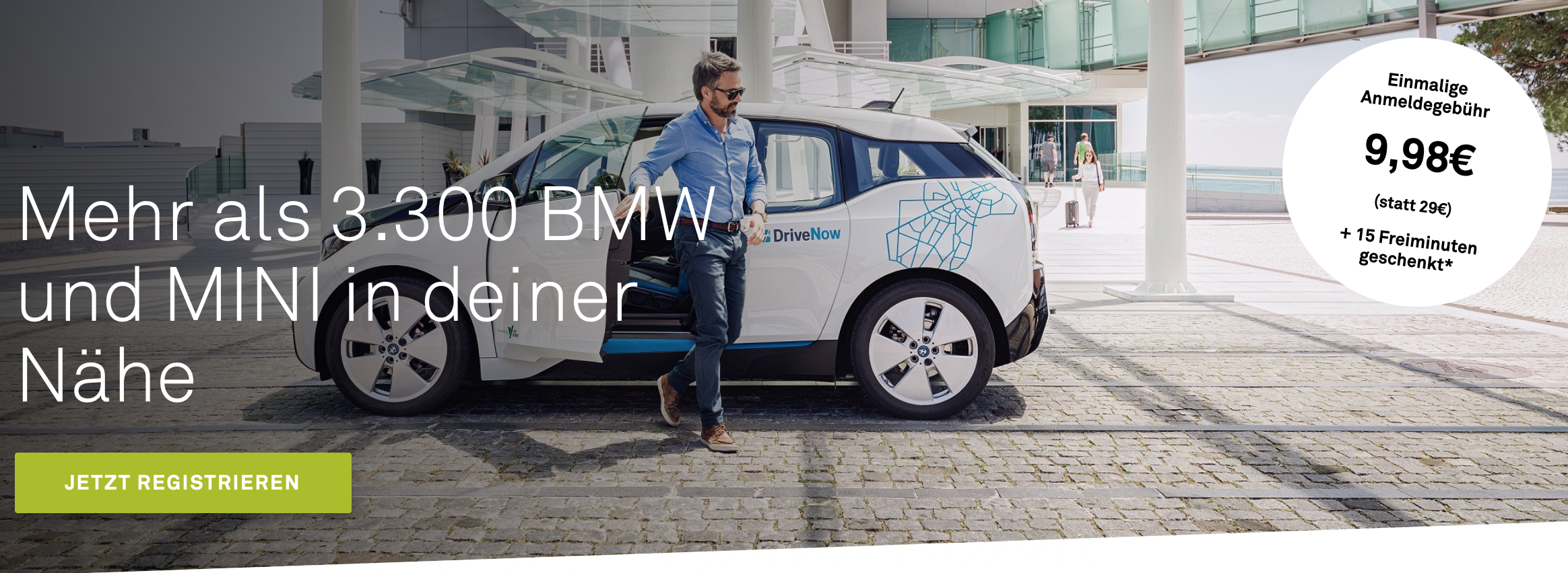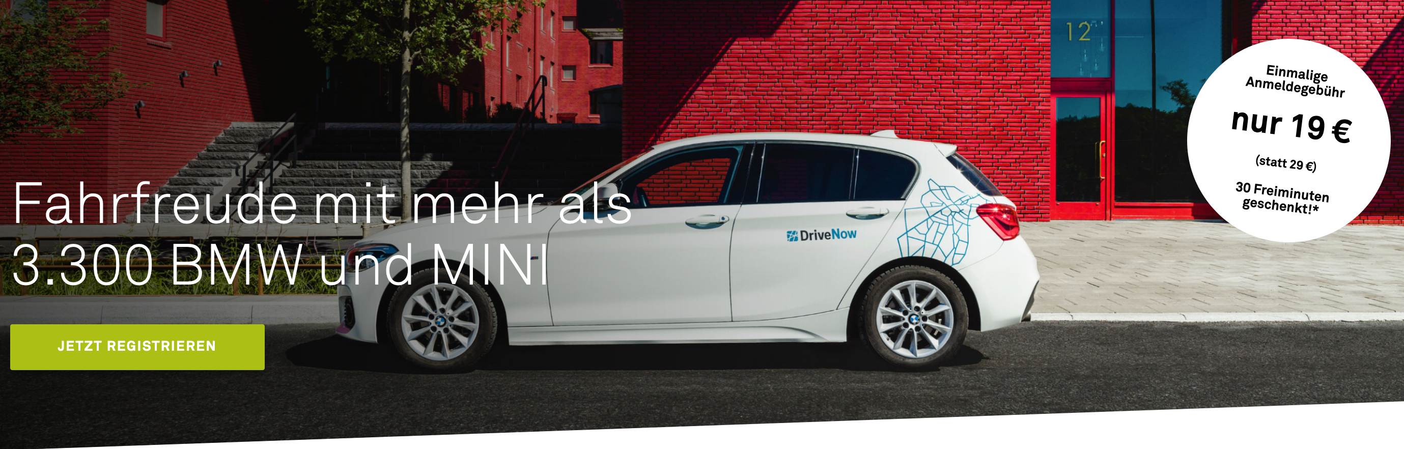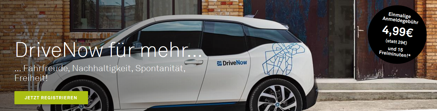 | Aktion | Nur 19€ Anmeldegebühr & 10€ Startguthaben bei DriveNow | Bis auf Widerruf |