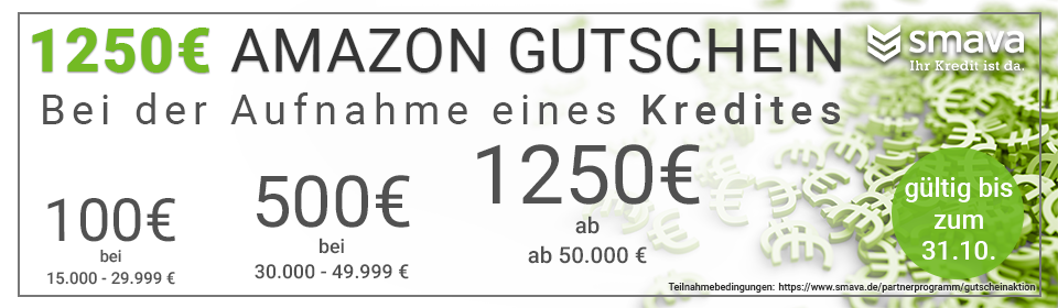 Schließe bei smava online einen Kredit ab und sichere dir einen 1.000€ Amazon Gutschein.
