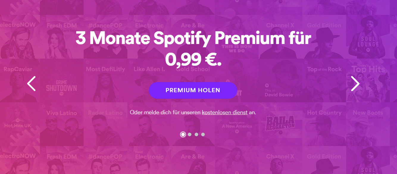 | Aktion | Bei Spotify könnt ihr kostenlos Musik hören | Bis auf Widerruf |