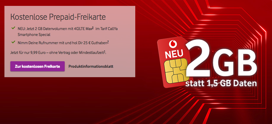 Vodafone Angebot: Gratis 11GB LTE mit Callya Smartphone Special