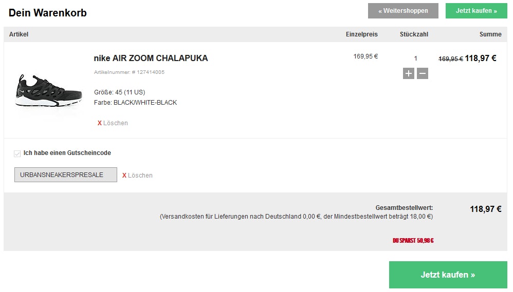 - mit dem Gutscheincode: URBANSNEAKERSPRESALE