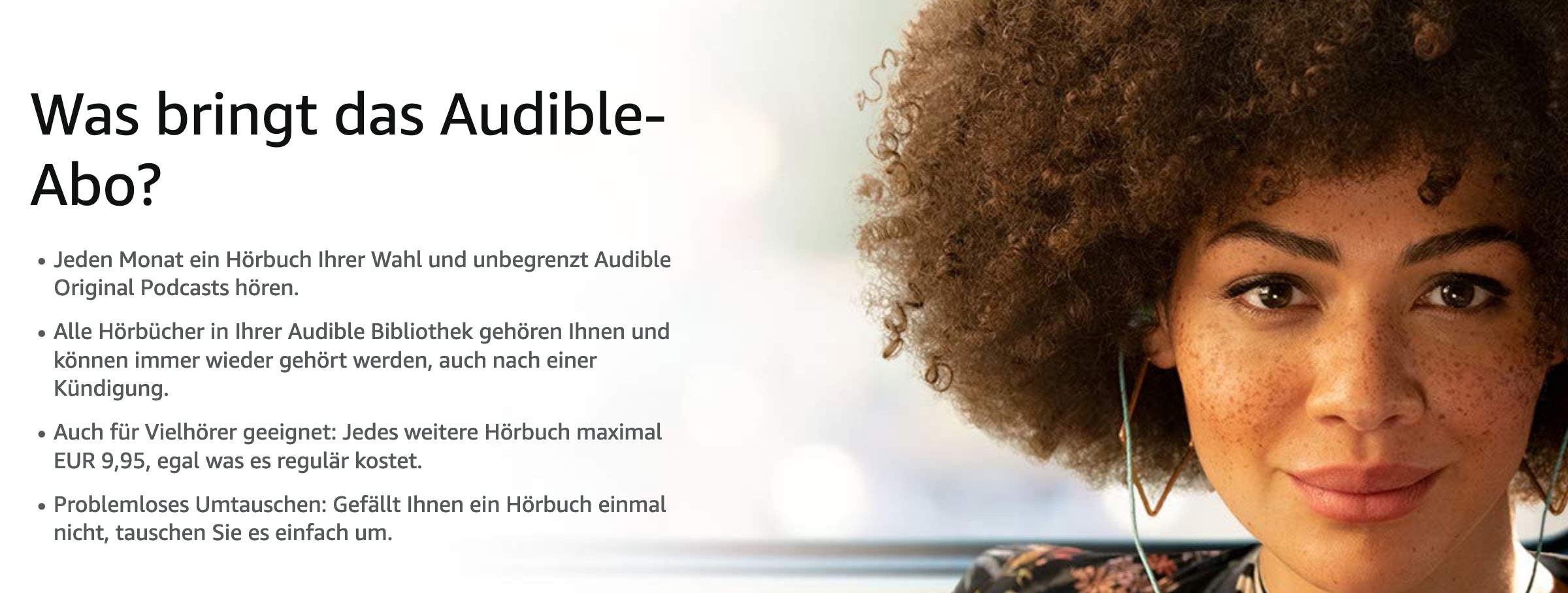 Audible ist für Hörbücher das, was Netflix für Filme und Serien ist: Im Abo habt ihr die Auswahl zwischen tausenden Hörbüchern, Hörspielen und Audible Original Podcasts, die ihr auf eurem Smartphone oder über den Computer genießen könnt. Regulär könnt ihr euch immer für nur 1 Hörbuch entscheiden, das ihr im Moment vorgelesen bekommen wollt. Das könnt ihr allerdings durchwechseln und so im Monat auch mehrere Bücher durchlesen.