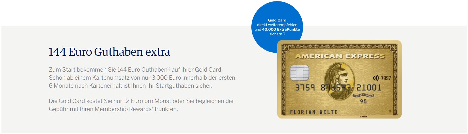 American Express Gold mit 144€ Startguthaben - mit 40.000 Membership Rewards Points