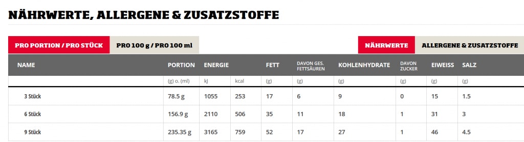 Wir wollen euch nicht den Spaß beim Schlemmen verderben, aber so ein kleiner Blick auf die Nährwerte kann ja nie schaden. Generell weiß wohl jeder, dass regelmäßiger Verzehr solcher Fast Food Portionen nicht förderlich für eine gesunde Ernährung ist. Falls es nicht zur Gewohnheit wird, darf sich aber jeder mal etwas gönnen. Am Ende entscheidet ihr ganz allein, ob ihr die 12 Hot Wings teilt oder euch allein zu Gemüte führt. 😛 Guten Appetit!