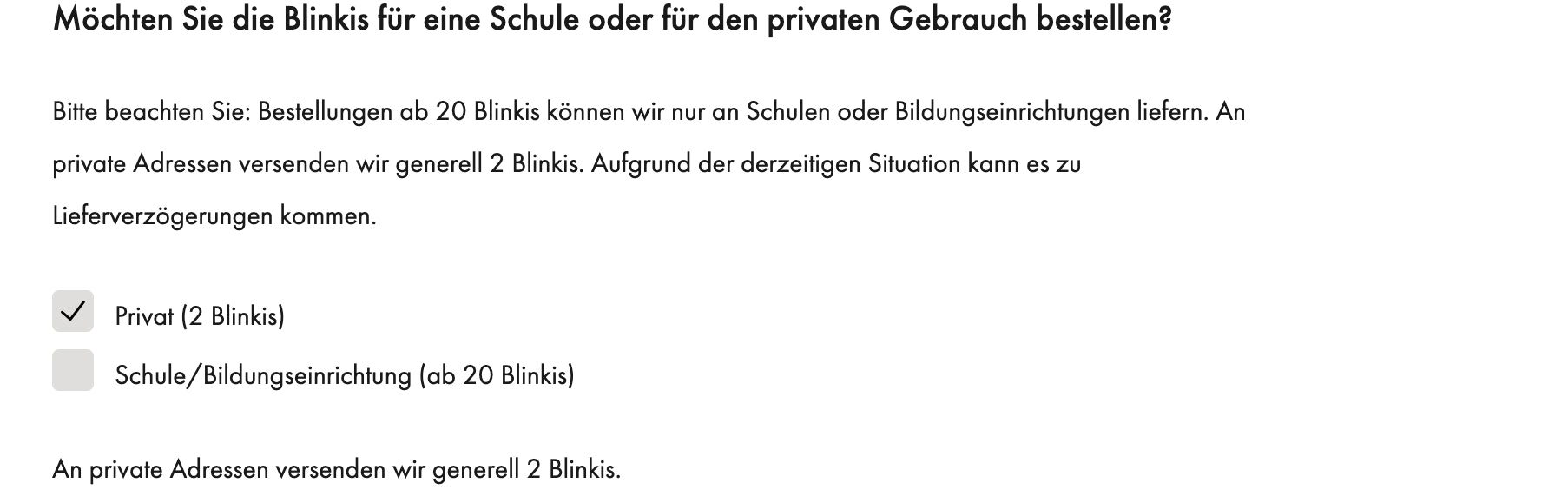 Offiziell können die Reflektoren von Schulleitern an Grundschulen, Klassenlehrern oder Elternvertretern bestellt werden. Es ist aber kein Nachweis erforderlich und der Versand an Privatadressen ist problemlos möglich. Bis zu 100 Blinkis sind pro Bestellungen möglich (an Privatadressen werden allerdings nur 2 Blinkis verschickt!), größere Mengen können gesondert per Mail angefragt werden. Wie immer gilt aber: Bitte nicht übertreiben, damit die Aktion nicht vorzeitig beendet wird 😉