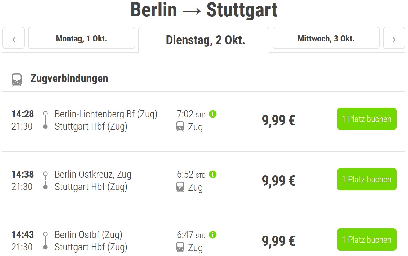 - Berlin –> Stuttgart ab 9,99€