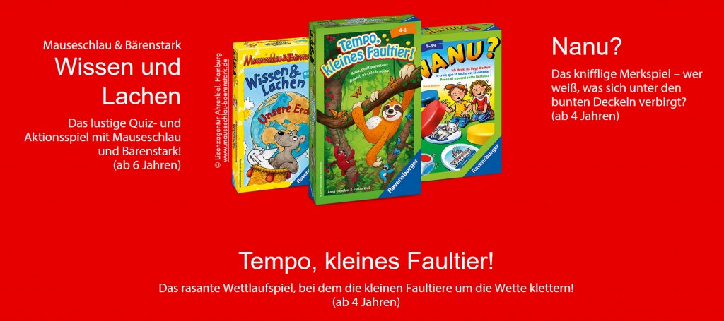 Die Hochland Deutschland GmbH (im Folgenden „Hochland“ genannt) führt unter der Marke Hochland im Zeitraum vom 13.07.2020 bis zum 31.10.2020 (Aktionszeitraum) eine Sammelaktion durch. An dieser Aktion können alle natürlichen Personen ab 18 Jahren mit Wohnsitz und Anschrift in Deutschland oder Österreich teilnehmen. Mitarbeiter und Angehörige der beteiligten Firmen sind von der Teilnahme ausgeschlossen. Die Teilnahme erfolgt ausschließlich online per Upload der Kaufbelege im Aktionszeitraum. Die Aktion ist nicht mit anderen Aktionen, Coupons oder Rabatten kombinierbar. Bei gültiger Teilnahme, die den Kauf von 3 Aktionsprodukten im Aktionszeitraum bestätigt, erhält der Teilnehmer eines von insgesamt 10.000 Ravensburger Mitbringspielen. Pro Teilnahme können maximal 3 Kassenbons hochgeladen werden. Jeder Kassenbon kann nur einmal eingesetzt werden. Die vollständigen Original-Kaufbelege sind bis 2 Wochen nach Aktionsende zu Prüfungszwecken aufzubewahren und auf Anfrage vorzulegen. Pro Person und Anschrift ist nur eine Teilnahme möglich. Pro gültiger Teilnahme werden maximal 2 Spiele versendet, auch wenn die Teilnahme mehr als 6 Aktionsprodukte aufweist. Bei gültiger Teilnahme kann aus den nachfolgenden 3 Ravensburger Mitbringspielen gewählt werden: Nanu?, Tempo kleines Faultier, Wissen & Lachen. Die freie Spielauswahl ist abhängig von der Verfügbarkeit der Spiele.