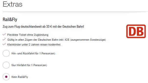 Rail & Fly zubuchbar (z.B. für Langstrecken)