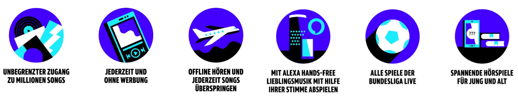 Was bietet der Streaming-Dienst von Amazon? Auf jeden Fall jede Menge Musik und unbegrenzten Zugang zu euren Lieblingsliedern – ob online oder offline. Wer außerdem noch Alexa zu Hause hat, kann dank der Hands-Free-Funktion die Musik per Sprachsteuerung abspielen. Auch Hörbuch-Fans kommen auf ihre Kosten – ob jung oder alt, spannende Geschichten warten auf Jedermann. Wer die Bundesliga live verfolgen will, kann auch das mit Amazon Music Unlimited tun. Klingt nach einem Rundum-Paket für die ganze Familie. Was will man mehr? 🙂