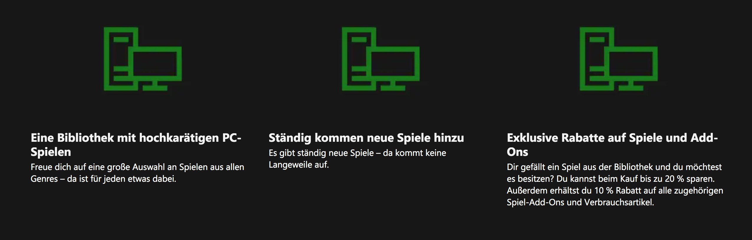 Der Game Pass für den PC ist so etwas wie eine Spiele-Flatrate und kann nur für Spiele für den PC genutzt werden. Eine bestimmte Auswahl an Games könnt ihr beliebig lange spielen, wobei ihr nicht jedes einzeln zahlt, sondern nur den monatlichen Grundpreis, der in diesem Fall bei 1€ für einen Monat liegt. Nach diesem Angebotsmonat läuft das Abo zum Normalpreis weiter – wollt ihr das nicht, könnt ihr natürlich einfach vorher rechtzeitig kündigen.