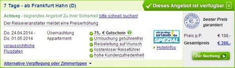 | Aktion | Last Minute Urlaub bis 299€ | Bis auf Widerruf |