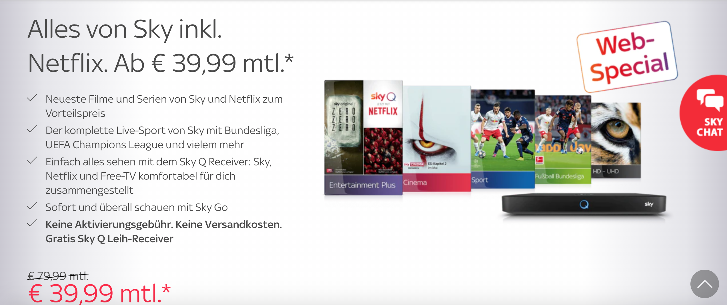 | 59€ Rabatt | Jetzt bei Sky die Aktivierungsgebühr sparen | Bis auf Widerruf |