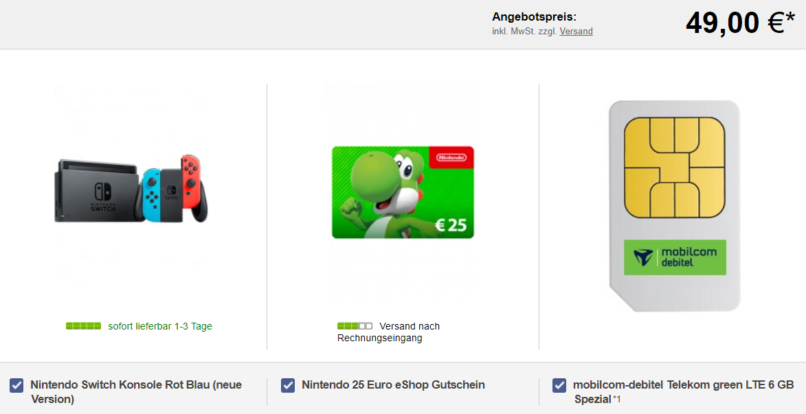 Nintendo Switch + 25€ Gutschein für eShop im Telekom green LTE für 16€/Monat - 6GB LTE, Allnet-Flat, EU-Roaming